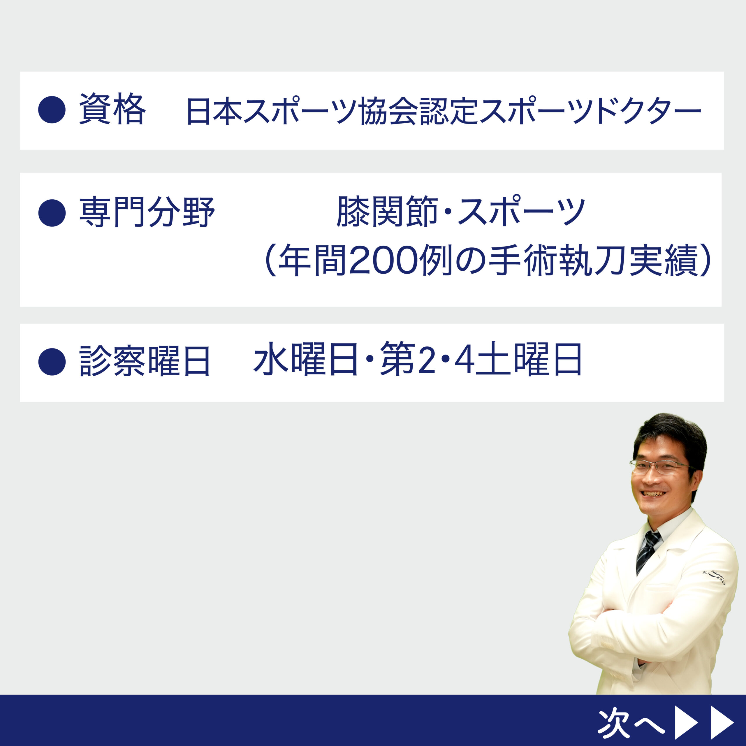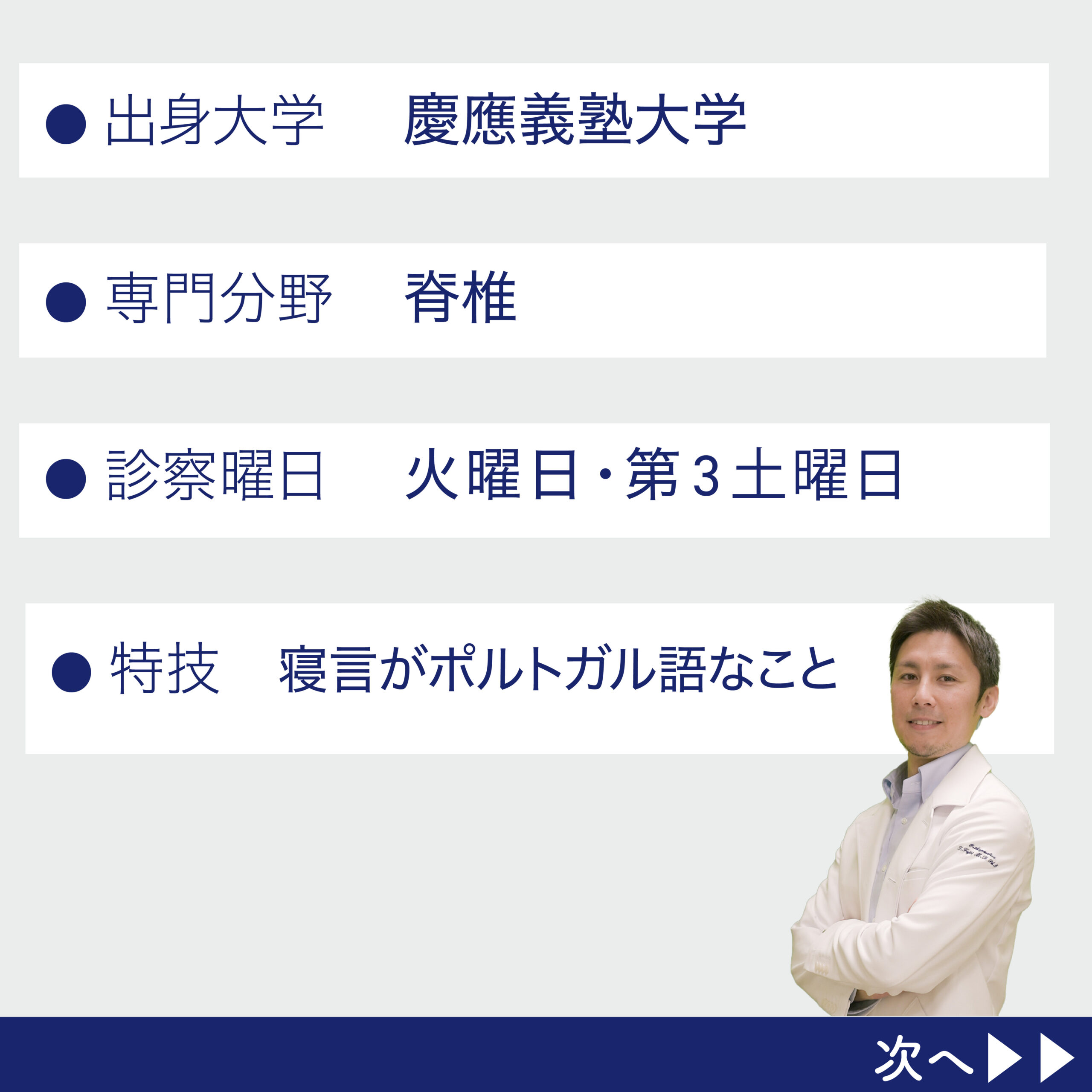 私は学生時代にバスケットボールをしていた経験から、肩や膝の関節の痛みを治療する医師を志しました。