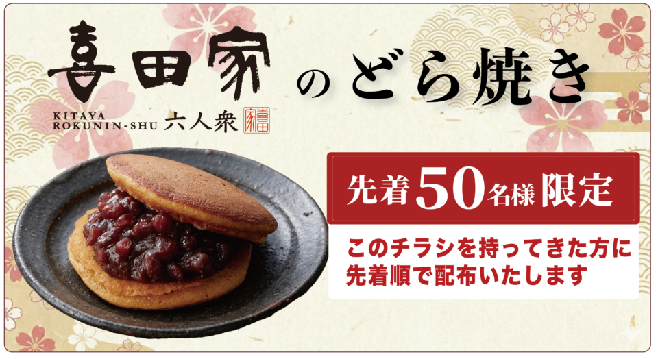 参加特典:喜田屋のどら焼き ※先着50名